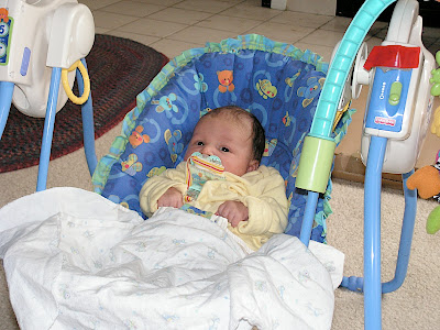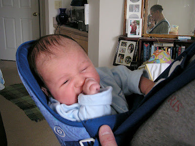He got a bath this morning finally, and has basically slept the day away in the sling. He actually kind of cried when I took him out of the moby, he was so comfortable. Hopefully tonight will go as smoothly.