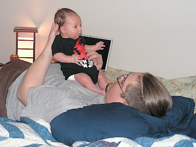 This is all in practice to start gearing up to work in May. After monday and my next doc's visit, I'll be officially done with postpartum which means I need to start getting in to the office a couple times a week and / or working from home. How that is going to work out is a good question. The biggest hurdle is feedings. I still have the electronic pump until the 15th, but I'd hoped not to depend on it since it is kind of an expense. I have a hand pump, which is slow and inefficient and oh yeah, slow. This is why I'm hoping to work from home as much as possible or have him in the office with me. Hope to work out a basic schedule with Paul today. At the moment, we're not planning on day care.