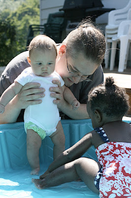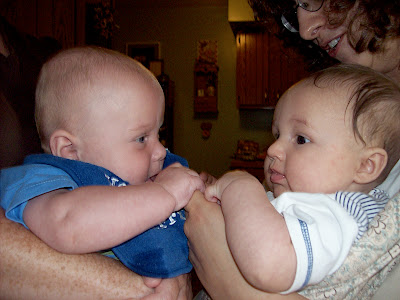 We tried a little smashed banana today, a lot of it got pushed back out, so I think we'll wait a bit and try again in a week or two. No rush. Really the teething is what's got his attention these days. He's sleeping more consistantly (9pm bed \ up at 1:30a to eat \ up at 4:30a to eat \ up between 6:30 and 7am for the day) and we're at least not up ever single hour of the night. Some of that is we've started to put him to sleep on a blanket on our bed, then when he's floppy we move him and the blanket to the crib. It worked really well until he started rolling in his sleep. So, now he's on a very thin blanket that we tuck in to the mattress once we move him. I think we made the mistake of putting to sleep in arms just to have him wake up when we put him down. But he's so much more alert and aware than he was. I think he will find our place boring now since there is no one here but us.