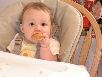 Tobo has also been eating teething biskets happily, though it's a bit of a mess.